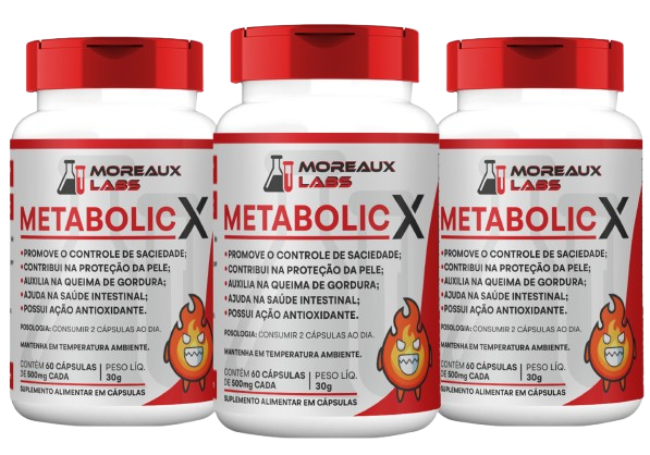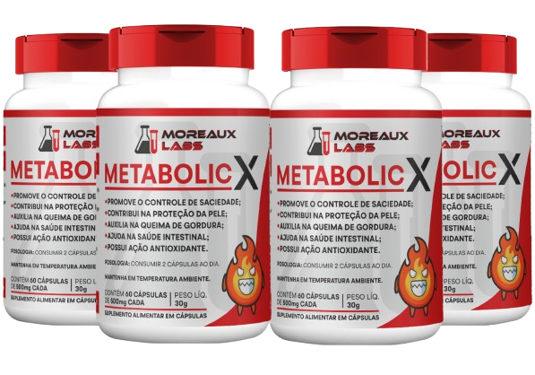 Cuide de sua saúde com uma fórmula desenvolvida para acelerar seu metabolismo e promover um emagrecimento saudável. Com ingredientes selecionados para maximizar seus resultados, Metabolic X é o suplemento perfeito para quem busca transformar seu corpo e aumentar a disposição no dia a dia.
